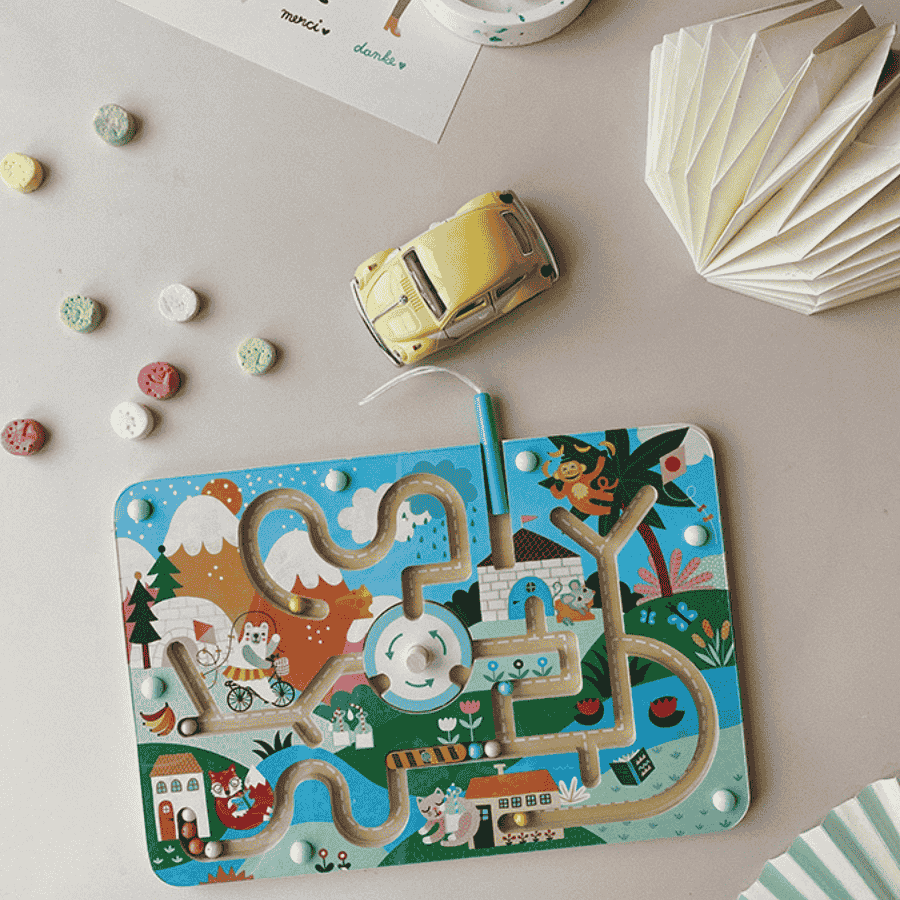Sanatçı Michelle Carlslund'un büyüleyici dünyasına hoş geldiniz! Bu manyetik labirent, minik parmakları eğlenceli bir keşfe çıkarırken onlara sabır ve odaklanmanın kapılarını aralıyor. Renkli bilyeleri manyetik kalemle labirentin içinde gezdirmek, çocukların el becerilerini geliştirmenin en sanatsal yolu.